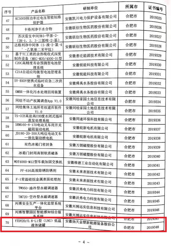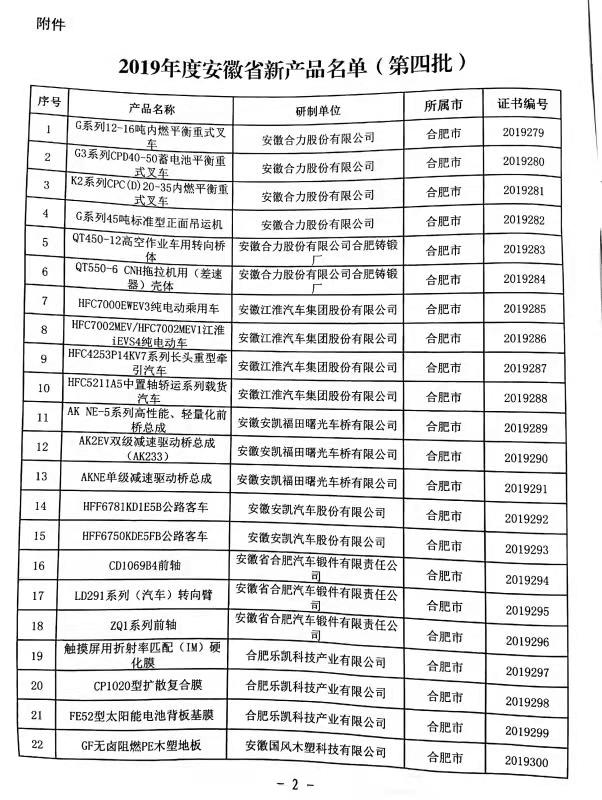 近日,安徽省經濟和信息化廳公布了“2019年度安徽省新產品(第四批)擬定名單公示”。本次全省共計325項產品入選,我公司產品名列其中。